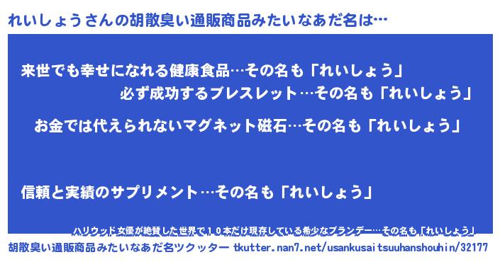 | ヘコむあだ名 | 『れいしょう(小並感)』『れいにゅー』 |