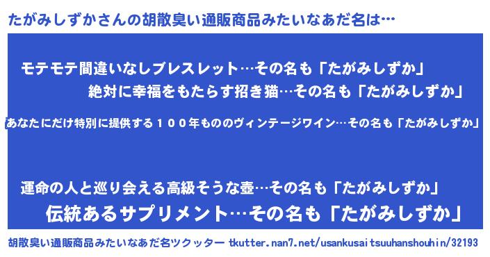 | 意味不明あだ名 | 『住所不定無職たがみしずか(5歳)』 |