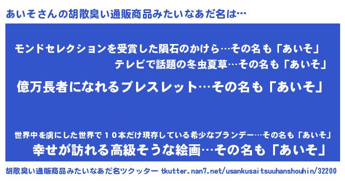| 意味不明あだ名 | 『ペロリンあいそ』『あいそフォーエバー』 |