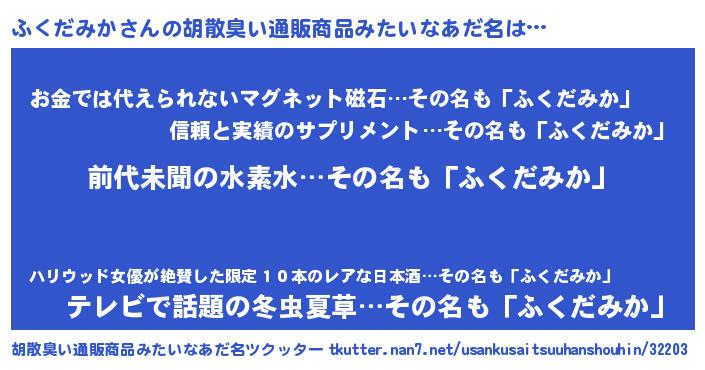 | 意味不明あだ名 | 『永久保存ふくだみか』『自称ふくだみか』 |