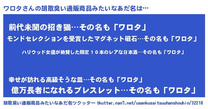 | 料理風あだ名 | 『ワロタのカルパッチョ風』 |