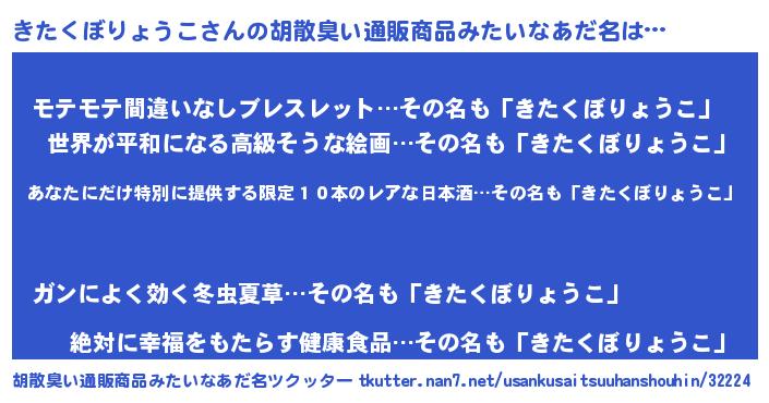 | 男性向けラノベタイトル風あだ名 | 『この素晴らしい世界にきたくぼりょうこを!』 |