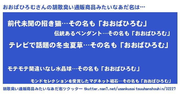 | ヘコむあだ名 | 『おおばひろむ(苦笑)』『おおを』 |