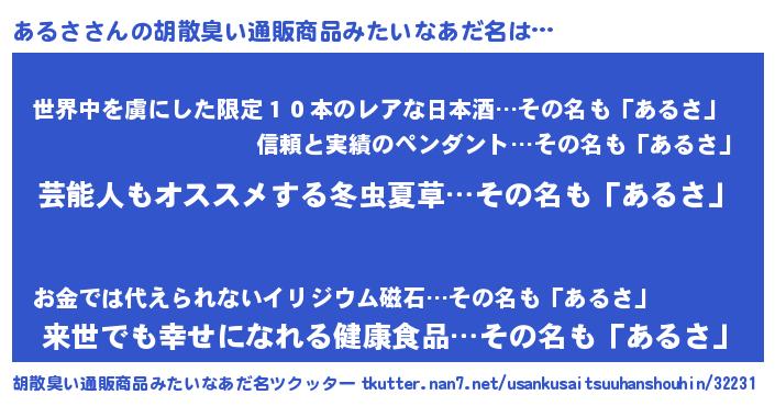 | 意味不明あだ名 | 『自称あるさ』『住所不定無職あるさ(41歳)』 |