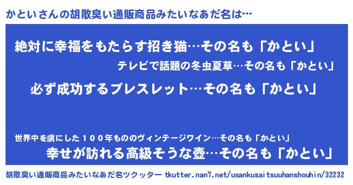 | ヘコむあだ名 | 『かとふぇ~』『かとい(笑)』 |