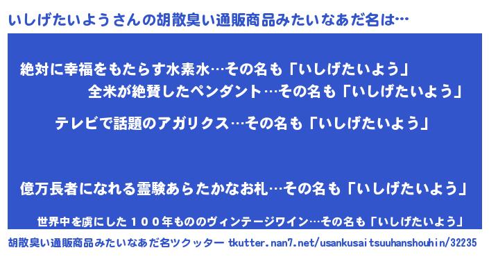 | 意味不明あだ名 | 『自称いしげたいよう』 |