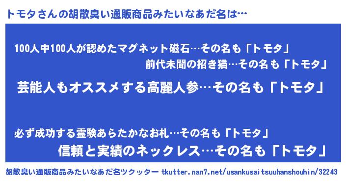| 意味不明あだ名 | 『自称トモタ』『眠気覚ましガムトモタ味』 |