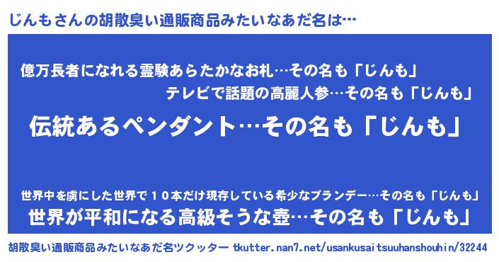 | 意味不明あだ名 | 『とにかく怪しいじんも』『自称じんも』 |