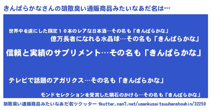 | 欧米人風あだ名 | 『ウサインきんぱらかな』 |