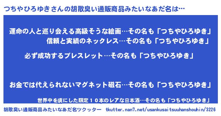 つちやひろゆきさんの胡散臭い通販商品みたいなあだ名をツクッター!
