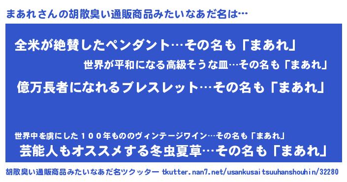 | 意味不明あだ名 | 『ペロリンまあれ』『自称まあれ』 |