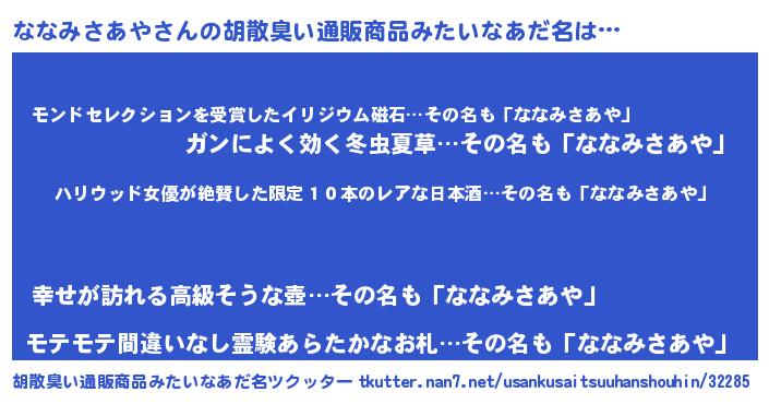 | ヒーロー風カッコイイあだ名 | 『仮面ナナダー』『スーパーナナミサアヤ』 |