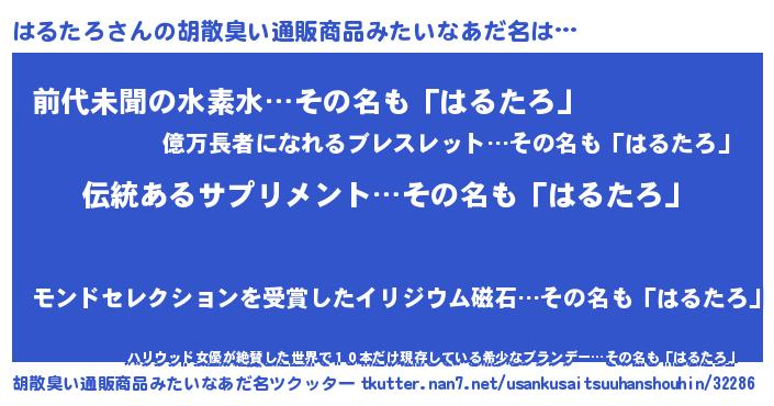 | 男性向けラノベタイトル風あだ名 | 『はるたろの嫁は女の子じゃないと思った?』 |