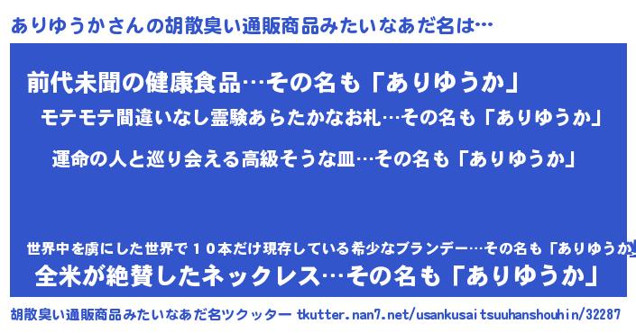 | 意味不明あだ名 | 『ありゆうかフォーエバー』 |