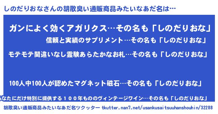| ヘコむあだ名 | 『しのっふぃ~』『しの太郎』『牛乳』 |