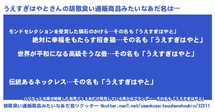 | 意味不明あだ名 | 『うえすぎはやとフォーエバー』 |