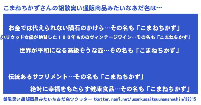 | 意味不明あだ名 | 『こまねちかずフォーエバー』 |