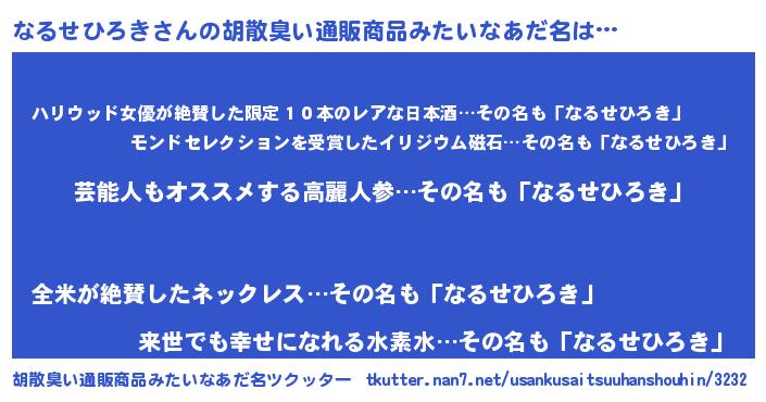 | 意味不明あだ名 | 『自称なるせひろき』 |