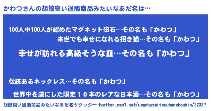 | 肩書あだ名 | 『かわつ国家主席』『かわつ船長』 |