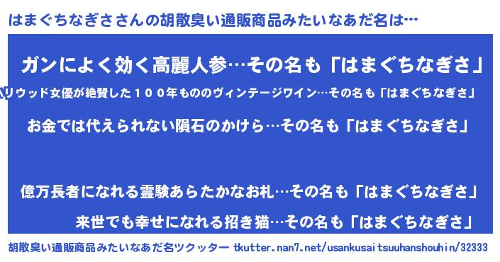 | ヘコむあだ名 | 『はまぐちなぎさ(遠い目)』『はまにー』 |