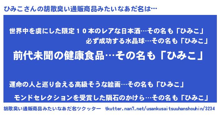 | ヘコむあだ名 | 『ひみこ(笑)』『ひみにゅー』 |