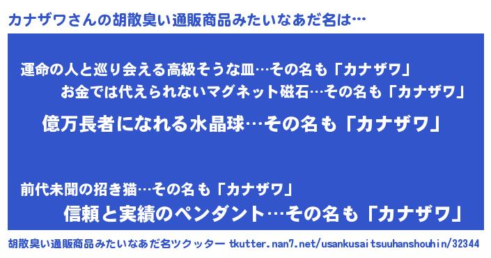| 意味不明あだ名 | 『ペロリンカナザワ』『永久保存カナザワ』 |