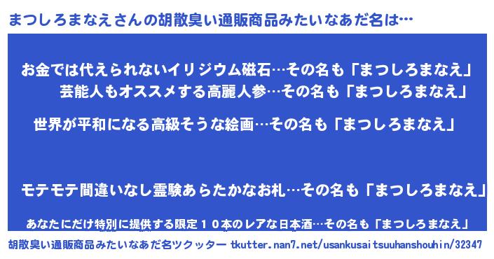 | 肩書あだ名 | 『まつしろまなえ総理大臣』 |