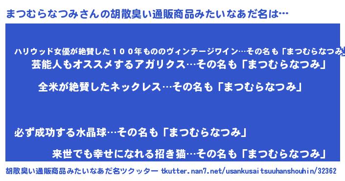 | ヘコむあだ名 | 『まつっ子』『まつむらなつみ(笑)』 |