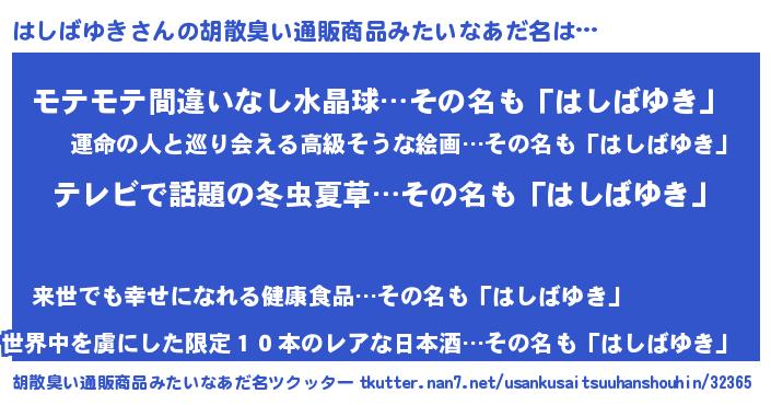 | ヘコむあだ名 | 『はしもー』『豆乳』『はしっちょ』 |