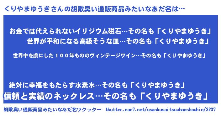 | 意味不明あだ名 | 『住所不定無職くりやまゆうき(4歳)』 |
