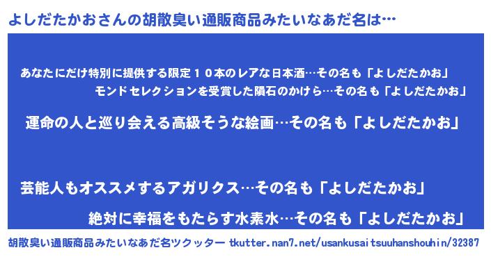 | 意味不明あだ名 | 『よしだたかおフォーエバー』 |