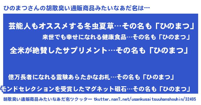| 意味不明あだ名 | 『とにかく怪しいひのまつ』 |