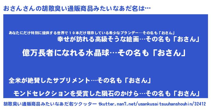 | 欧米人風あだ名 | 『マイケルおさん』『ダレノガレおさん』 |