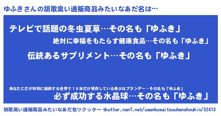 | 恥ずかしいあだ名 | 『ユフリンリン』『ユフキデラックス』 |