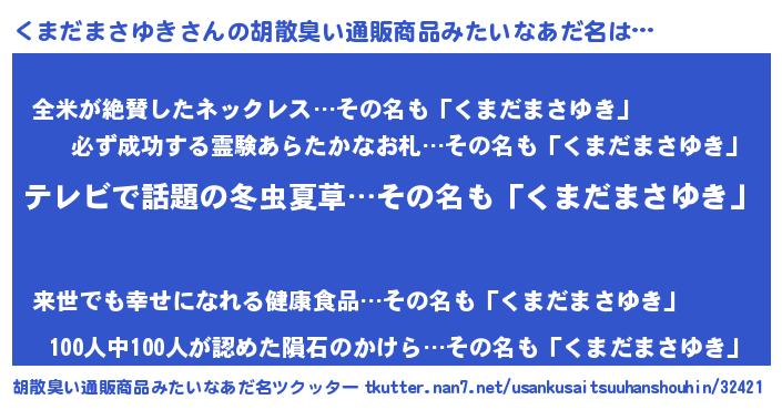 | ポケモン風あだ名 | 『クマセウス』『ヒクマダマサユキ』 |