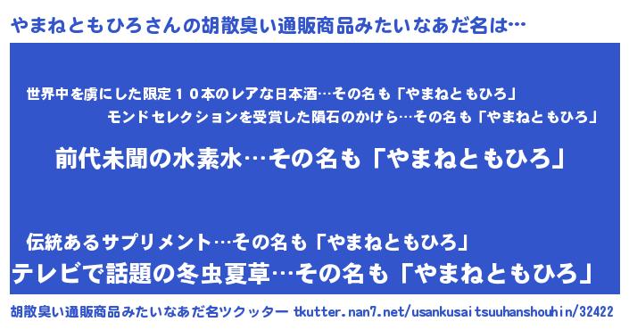 | ヘコむあだ名 | 『やまねともひろ(苦笑)』『やまっ子』 |