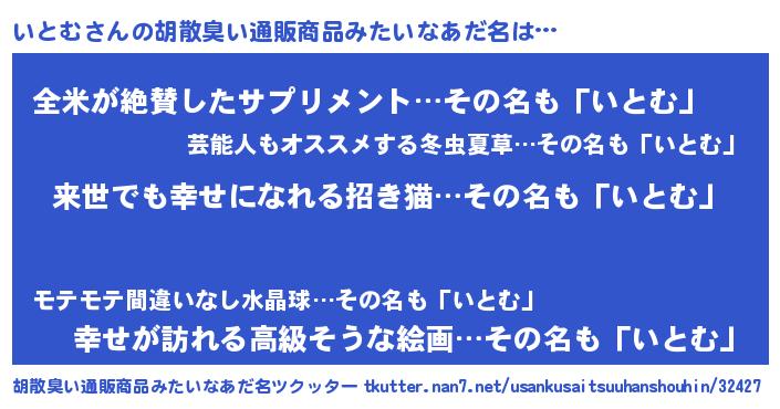 いとむさんの胡散臭い通販商品みたいなあだ名をツクッター!