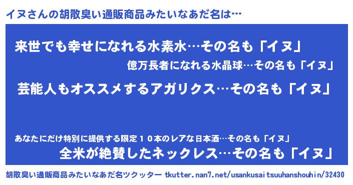 | ヘコむあだ名 | 『イヌ(爆)』『イヌっちょ』『牛乳』 |