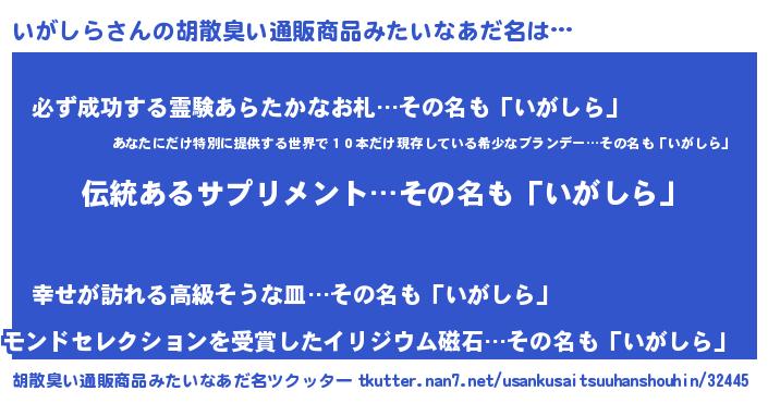 | 意味不明あだ名 | 『とにかく怪しいいがしら』 |
