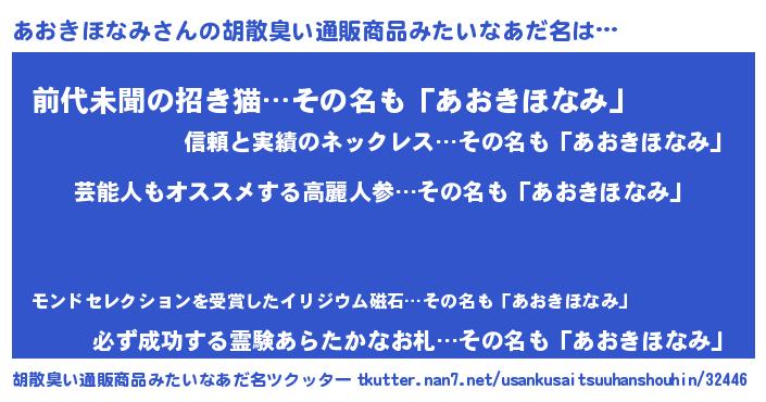 | 意味不明あだ名 | 『自称あおきほなみ』 |