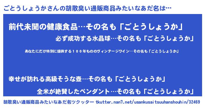 | 意味不明あだ名 | 『住所不定無職ごとうしょうか(6歳)』 |