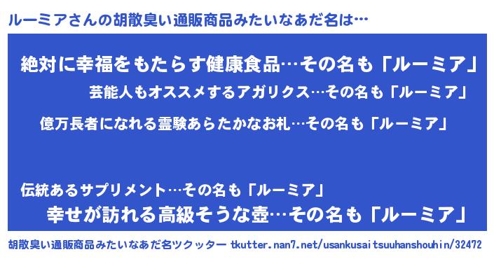 | ヘコむあだ名 | 『ルーっふぃ~』『ルーミア(笑)』 |