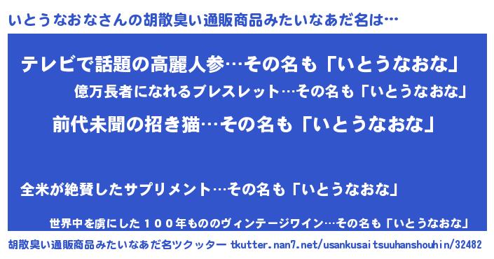| 恥ずかしいあだ名 | 『いとちん』『イトウナオナデラックス』 |