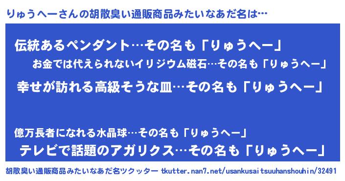 | 女子向けラノベタイトル風あだ名 | 『りゅうへーの雑貨屋さん』 |