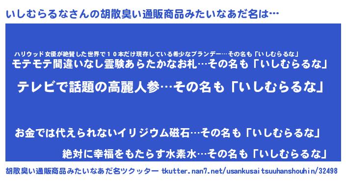 | 意味不明あだ名 | 『自称いしむらるな』 |