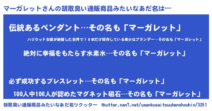 | 意味不明あだ名 | 『永久保存マーガレット』 |