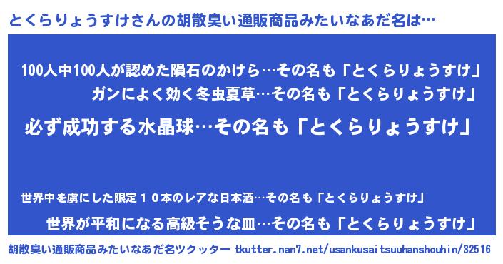 | 男性向けラノベタイトル風あだ名 | 『緋弾のトクラリョウスケ』 |