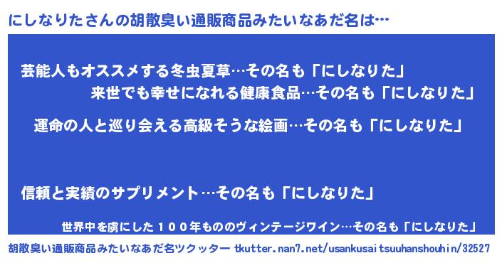 | 肩書あだ名 | 『にしなりた総理大臣』『にしなりた総統』 |
