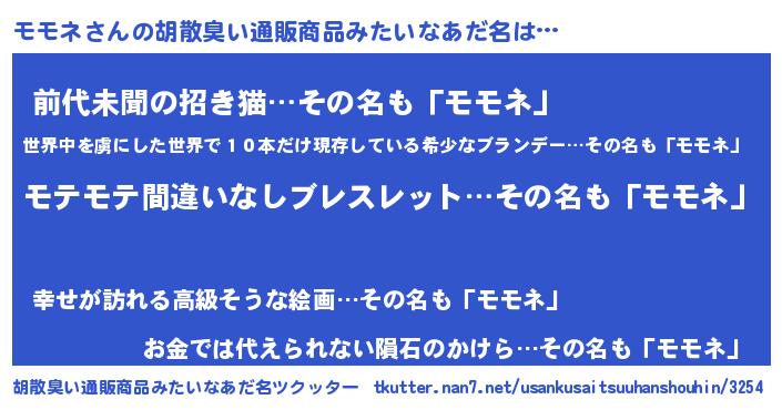 | 意味不明あだ名 | 『ペロリンモモネ』『永久保存モモネ』 |