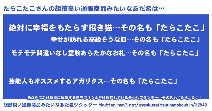 | ヒーロー風カッコイイあだ名 | 『スーパータラコタコ』『ネオタラコタコ』 |